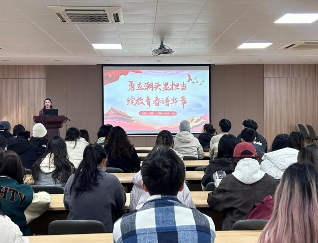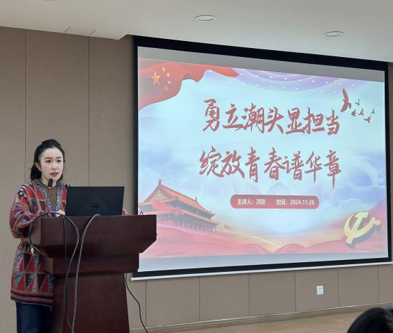 为深入学习习近平新时代中国特色社会主义思想,贯彻党的二十大、二十届三中全会精神,进一步增强学生党员的政治素养和党性修养,11月26日,家居院党委副书记、副院长洪琰在文科楼D228为全体新党员上了一堂生动而深刻的党课。