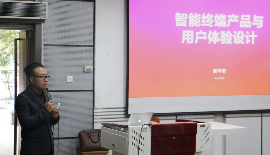 2016年11月18日下午,华为终端UX设计部主管郝华奇在教五楼阶二教室为我院师生做了题为“智能终端产品与用户体验设计”的设计讲座,学院相关专业教师及本科生、研究生近200人参加了本次讲座。