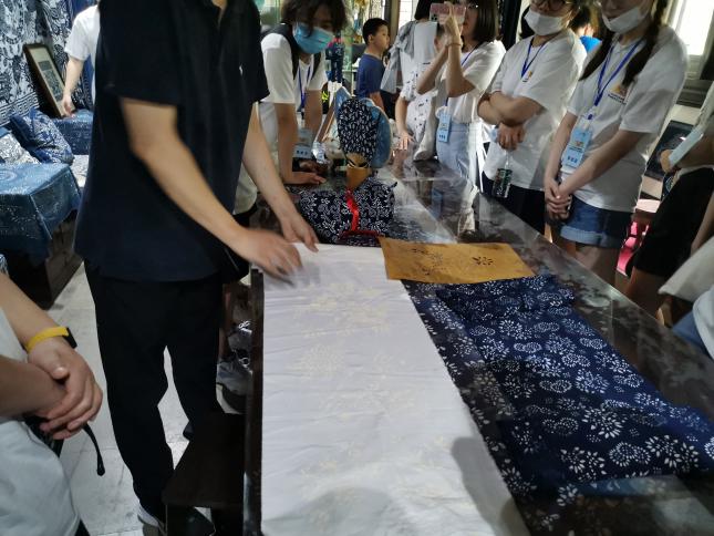 在博物馆,我们还有幸参与了蓝印花布的制作过程。在老师的指导下,我从选择图案、蘸染颜料,到印刷在布料上,亲身体验了这项传统工艺的每一个环节。制作过程虽然看似简单,但实际操作中却需要一定的技巧和耐心。那一刻,我感受到了艺术的乐趣,也明白了背后所蕴含的劳动和智慧。通过自己的亲手制作,我更深刻地领会到蓝印花布背后的艺术之美和劳动的价值。