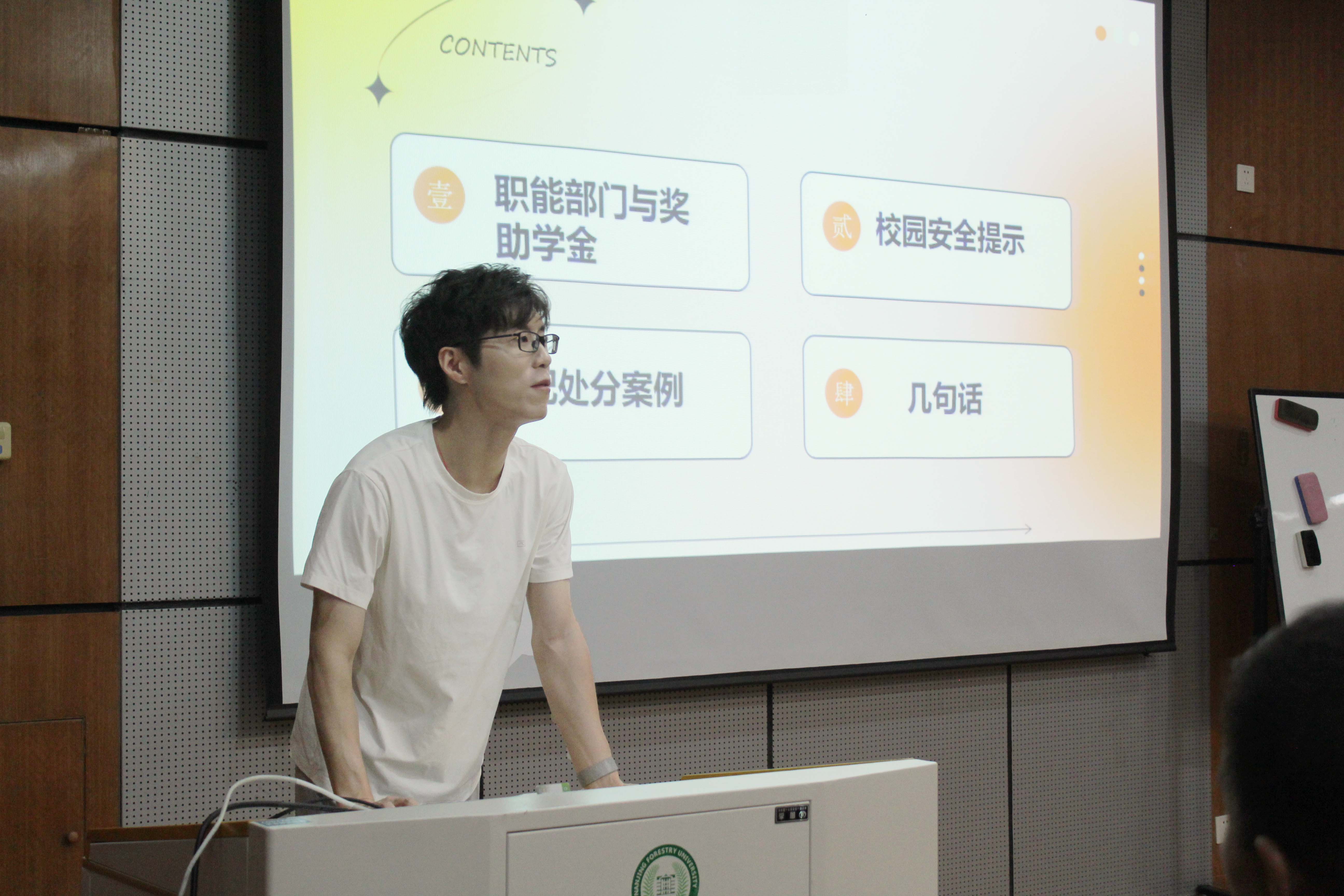 研究生辅导员姚舜禹向新生们介绍了学院行政部门及奖助贷体系,并强调了与导师沟通、自身职业规划的重要性,提醒同学们珍惜时间,积极利用校园内各类单位、企业的招聘会模拟参加面试,积累经验,锻炼自己,为未来职业发展做好准备。此外,在简历规划制作上,姚老师强调了个性化定制的重要性,提醒大家根据不同单位要求制作不同版式简历,尽可能用量化的数据内容来体现自己在校内外学习、实习的工作成果。