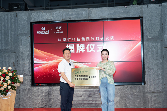 2025年8月6日,南京林业大学与味家竹科技集团有限公司共建的竹材研究院揭牌仪式在福建邵武举行,南平市林业局副局长叶华柳、邵武市政协主席叶永青、邵武市人大常委会副主任伊加生、邵武市人民政府副市长林新长、邵武经济开发区管委会主任吴兴盛、味家竹科技集团董事长钭祖军,南林家居学院院长徐伟、党委副书记兼副院长洪琰、教师代表李荣荣、陈红、陶鑫等共同参加了本次揭牌仪式和项目交流活动。