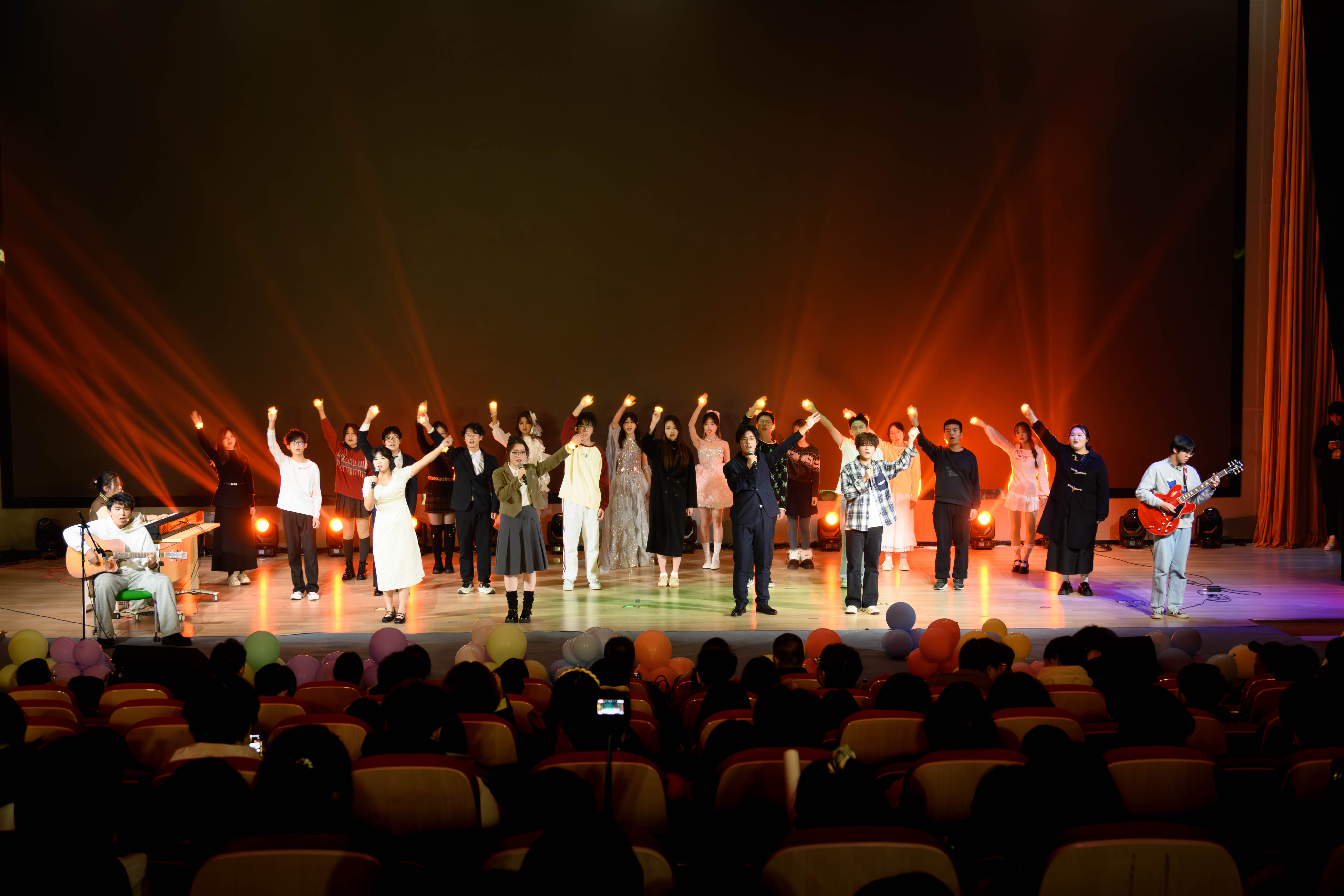 余雨瞳、赵铭伟分别独唱《到时说爱我》和《爱爱爱》,情感温柔细腻;王婉婷、刀靖等同学以创意走秀展现多元审美风格;十八届学生会干部的欢乐舞蹈《Colder than ice》紧随舞蹈圈的流行热度,引得观众喝彩。