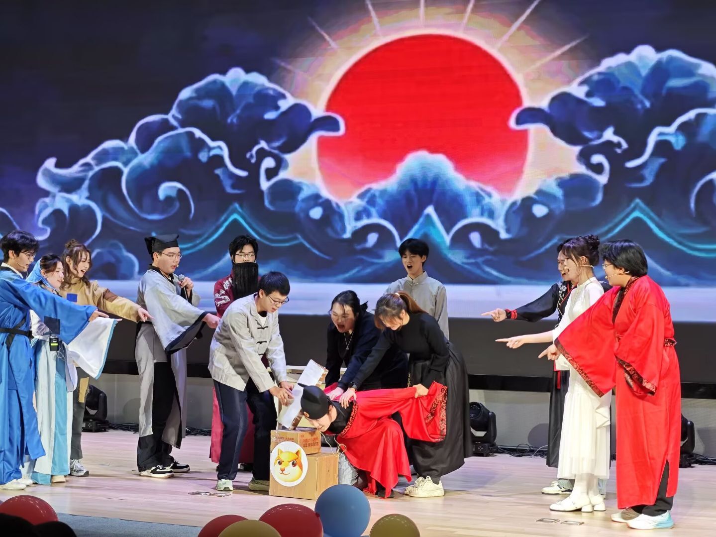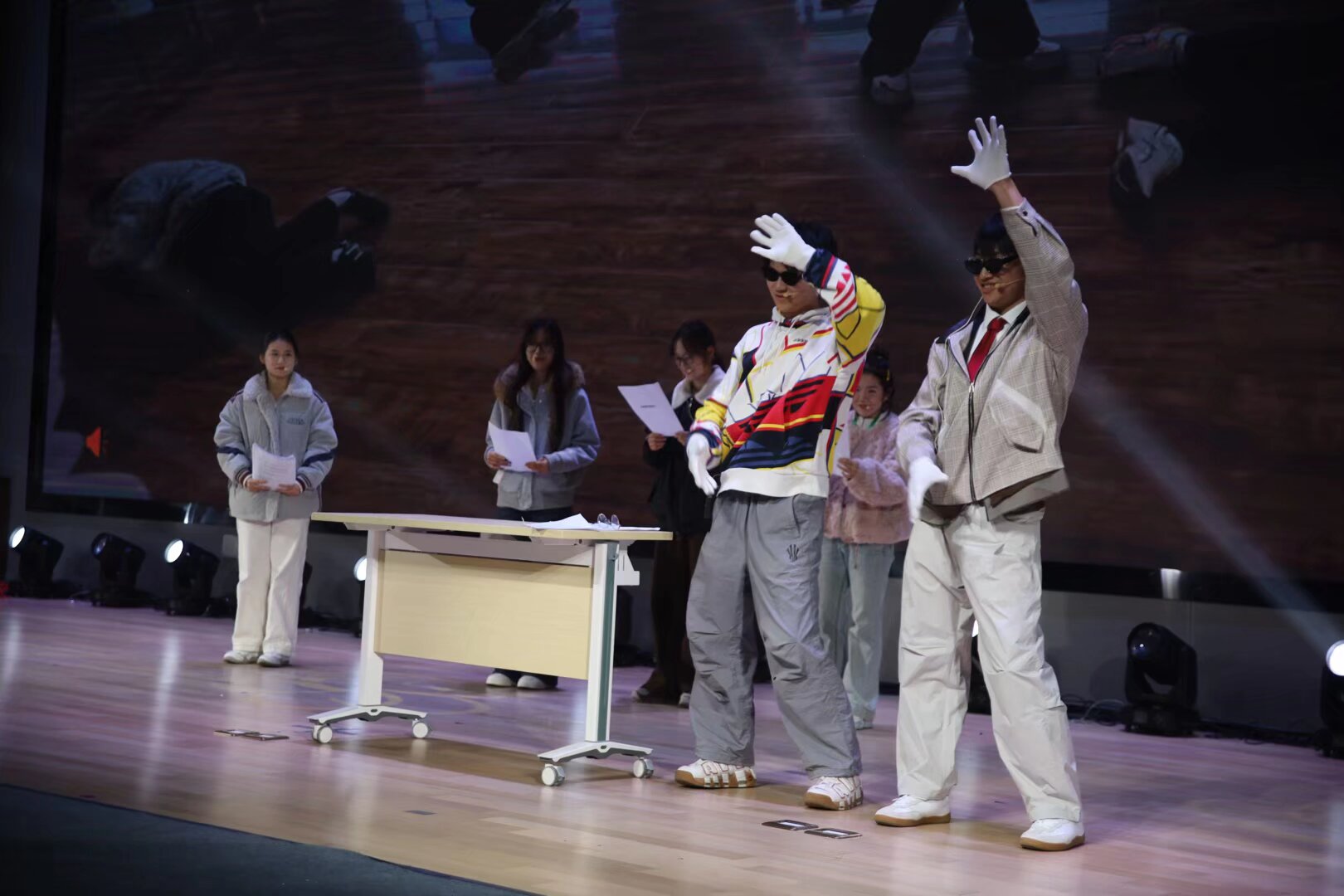 后续节目风格多样,持续掀起现场高潮。创意小品《铡美案》融合传统故事与现代元素,碰撞出别样的戏剧火花;邵可谦、陆欣霈深情对唱《特别的人》,以歌声书写一封青涩的青春情书。辅导员尹赛赛表演的舞蹈《街头男战士》惊喜“破圈”,动作铿锵有力、节奏鲜明,随后与学生干部的同台共舞,更展现出师生同心、凝聚向前的精神风貌。